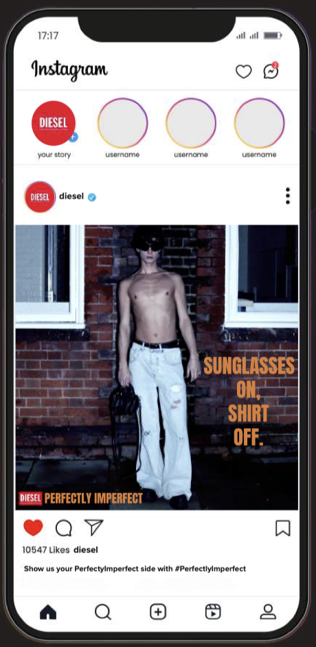 Reinforcing Diesel as a lifestyle brand Perfectly Imperfect empowers consumers to embrace their flaws as strengths. The campaign builds emotional connection and brand loyalty by rejecting imposed ideals and celebrating individuality through visual storytelling.